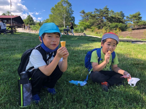 7月18日,2年生の子どもたちはサマープロジェクトとして八ヶ岳に行きました。オオムラサキセンターでの学習,八ヶ岳自然ふれあいセンター周辺でのネイチャーハイク,やまねミュージアム・ポールラッシュ記念館の見学など,自然と触れあう貴重な体験ができました。抜けるような青空のもとで食べた甘くて冷たいソフトクリームには,みんなが笑顔になりました。