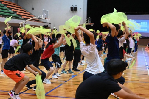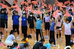 全校でのオープニングの練習の様子です。スポーツフェスティバル当日は5・6年生を中心に企画・準備を進めたオープニングをお届けします。ラストには,準備運動を兼ねて,全校児童による身体表現も行われます。