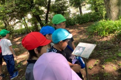 3年生は,unit1「自然の世界」の学習の一環として万力公園に校外学習に行きました。指導員の方説明を聞きながら自然の中を散策し,生き物の観察に取り組みました。植物やキノコ,虫などたくさんの出会いがありました。友だちといっしょに動物園を見学したり,遊具で身体を動かして遊んだりしたのも,よい思い出になったようです。森の木陰の涼しさを感じながら,自然を味わう時間を過ごすことができました。