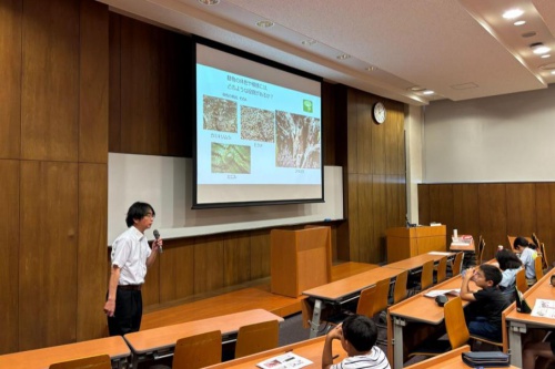 中でも【山梨学院短期大学特別講座(動物の色と模様)】では短期大学教授による特別講義をしていただきました。動物の体色,模様などについて探究されていることをお話しいただきました。