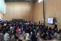 全校集会の後に6年生が1~5年生に向けてカルチャープロジェクトのチームプレゼンを行いました。
