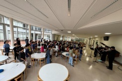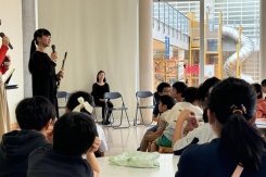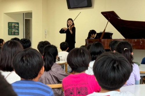 文化庁学校巡回公演事業のワークショップとして,4年生を対象にしたミニコンサートが開かれました。パシフィックフィルハーモニア東京からプロの演奏家をお迎えし,ヴァイオリン,オーボエ,トランペット等のオーケストラに欠かせない楽器の特長や演奏の仕方などを,細かく教わりました。また,2拍子や3拍子,4拍子の指揮の仕方も教えていただき,演奏家の伴奏のもと,実際に指揮を振らせていただきました。11月21日の本公演に向けた良い予習となりました。