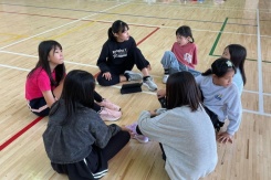 11月6日には、新体操・アイドル・メンズなどの5つのチームに分かれて、振り付けを考えたり、曲を決めたり、お互いにダンスを見せ合ったりしました。動画を撮って高学年は低学年に分かりやすく教え、低学年はしっかりと高学年や先生方の話を聞いてチーム活動を行いました。みんなで意見を出し合い、話し合いながら最後にはミニ発表会をして、良いところ・直したほうがいいところ、今後に生かすための活動内容を言い合いお互いに高め合いました。