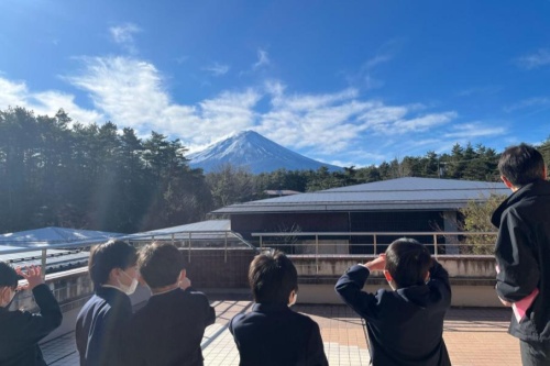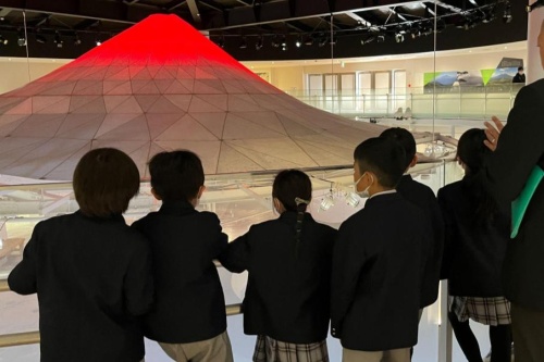 富士世界遺産センターへ行き,富士山の歴史や自然などを学んできました。富士山のパワーポイントを見てから館内と自然観察園を順番に回って案内してもらいました。今回はガイドの方が8人ついてくださり,疑問に思ったらすぐに尋ねられる状態で,終始子どもからの質問が飛び交っていました。子ども達は,富士山の魅力を知り,もっと知りたい気持ちに火がついた様子でした。山梨プロジェクトで更に探究を深め,富士山の新たな魅力を発見していってほしいと思います。