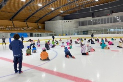 1年生は,小瀬スポーツ公園アイスアリーナで行われたスケート教室に参加しました。子どもたちにとって,小学校で経験するはじめてのスケート教室。スケート靴を履くと,普段の靴とは違った履き心地を感じている様子でした。準備体操を入念に行い,レッスンが始まりました。まずはリンクの手すりにつかまって氷の上をゆっくり歩いてみました。慣れてくると安全に転ぶ方法や止まり方,滑るときの足の向きなども教えていただきました。日常とは違った感覚を楽しみながら,氷上を安全に滑ることができました。