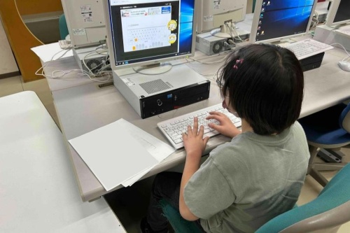 トワイライトスクール「プログラミング講座」の様子です。2年生から6年生を対象とした講座では初心者から経験者まで参加することができ、自分のレベルに合った課題に取り組むことでレベルアップを目指します。また講座内ではタイピング練習を通じてキーボードの配置を憶えることにより、タイピング力を高めることができます。