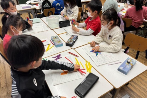 1年生では『100までの数』を学んでいます。カラフルな棒を使い,10本ずつのかたまりや5本ずつのかたまりにするなど,100までの数え方を工夫しました。