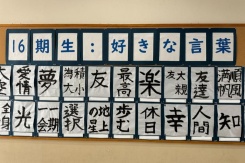 【16期生:好きな言葉】と題された言葉の数々はこれから山梨学院小学校を引っ張っていく5年生や1年生から4年生の心に深く響きました。