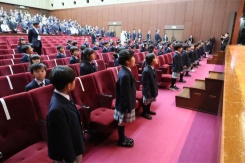 4月5日,陽気にも恵まれて,76名の新入生の入学式が行われました。保護者の方々が見守る中,新しいフォーマルウエアを着た新入生はとても輝いて見えました。「入学許可」では、担任から自分の名前を呼ばれると,大きな声でしっかりと返事をして,校長先生や児童会長の話を聞いて小学生の第一歩をふみだしました。