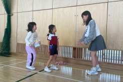新学年プロジェクトの後半には,身体測定をしたり体力テストをしたりしました。体力テストでは50m走と反復横跳びに挑戦しました。反復横跳びは,やり方を6年生に教えてもらい,できるだけたくさんできるようにがんばりました。大型遊具の使い方も学び,小学校生活に慣れてきています。