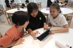 4学年では,調べた都道府県の魅力を音楽生成AIを使い,ご当地ソングとして表現しました。歌詞に名物や地名を盛り込み,曲調に地域の雰囲気を反映させる工夫が見られました。「沖縄は太陽と海の明るい音」「福岡は屋台のにぎやかさ」と,感覚を言葉にしてAIへ伝えるやり取りを通じ,語彙力や表現力が豊かになりました。完成した歌は仲間と共有され,「その県に行ってみたい!」と感情に訴える学びとなりました。