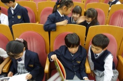 2年生は,Library Projectの一環で甲府市立図書館を見学しました。折しも山梨学院小学校では読書週間で,毎日読書を行っていることもあり,何万冊もの本を収納した本棚に目を輝かせていました。移動図書館や本の修理を行う部屋など,ふだんはあまり見ることができないところも見学できました。最後は,司書の方に読み聞かせをしていただき,本の世界を堪能することができました。