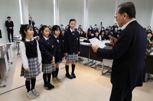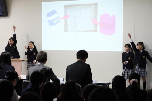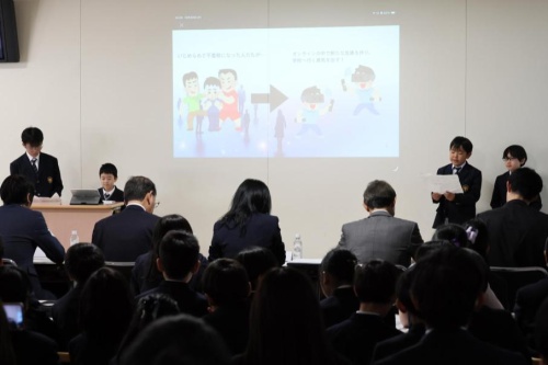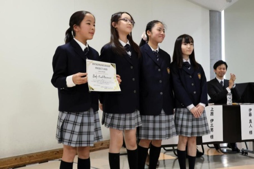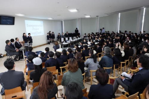 9月から18チームに分かれ社会課題からビジネスアイデアを構想し,集大成としてプレゼンを発表,“起業プランコンクール”を開催しました。審査には,県内外で活躍されている企業経営者や実業家の方々,保護者の方々をお招きし,子どもの柔軟な発想とプレゼンを評価していただきました。このプロジェクトは,コミュニケーション能力,新たな価値を生み出す創造力,挑戦する勇気を育む大切な機会となりました。