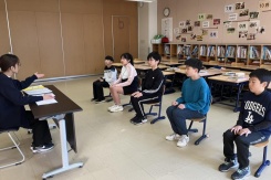 6年生は模擬面接を行いました。事前に面接マナーを学んだり,想定質問に対する自分の考えを用意したりして模擬面接の準備をしました。他学年の先生方を面接官に迎えて実施した模擬面接では,緊張しながらも自身のことを自分の言葉で語る姿が見られました。準備通りに話せた子も,緊張して思うように言葉が出てこなかった子もいたようですが,第2回模擬面接に向けて,だんだんと慣れていってほしいと思います。