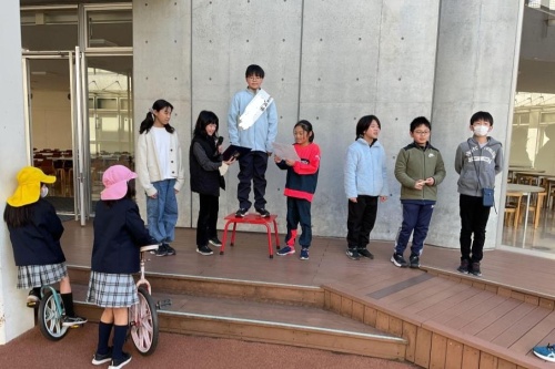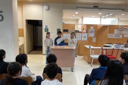 来年度の児童会役員を決める選挙に向けて,選挙活動が始まりました。毎朝,正門の前であいさつをしたり,休み時間に遊んでいる人に対して公約を遊説したりしています。また,他学年の朝活動の時間に訪問して,質問に答えることで会長候補の考えを伝える時間も設けました。他の5年生は,立会演説会に向けてのリハーサルを聞き,アドバイスを考えました。立候補した人もしない人も,全員でこれからの学校について深く考える機会として,充実した時間を過ごしています。