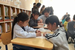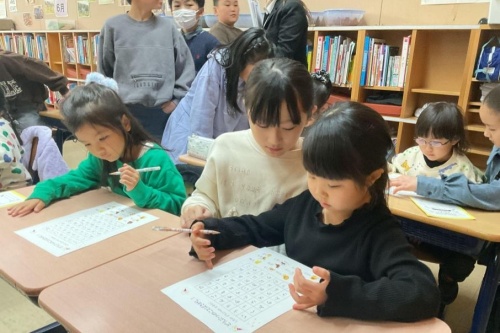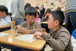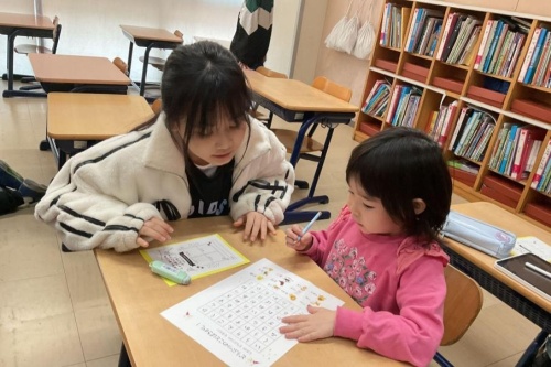「ことば・かず・しゃかい・えいご」の4ブースで子どもたちがミニ授業を行い、教材や劇などを自分たちで準備しました。幼稚園生の目線に立ち、「どうしたら楽しんでもらえるか」を考え工夫する姿から、やさしさや思いやりが感じられました。本活動はPYPユニット「他者理解」の学びとして行われ、伝える力や企画力、実行力を育む機会となりました。