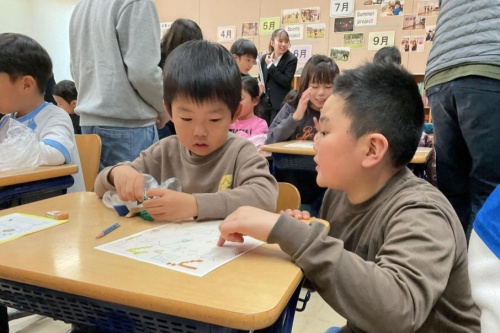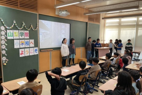 4年生は、山梨学院幼稚園の青組さんを迎え、幼小交流会を実施しました。