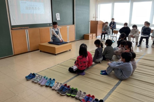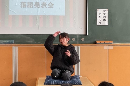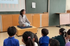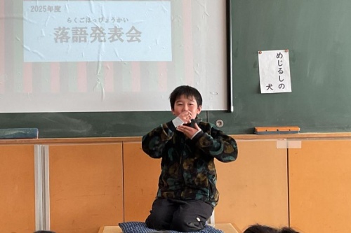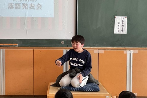 4年生は,言葉の授業で落語の練習をしてきました。顔の向きや声色を変えることで人物を演じ分けたり,ジェスチャーを交えたりしながら,場面の様子や話の面白さが伝わるように工夫してきました。1年生への発表会では,練習の成果を発揮し,工夫してお話を披露することができました。1年生からは「いろんなお話があって楽しかった」「このお話が特に面白かったよ」などの感想が寄せられ,大成功の発表会になりました。
