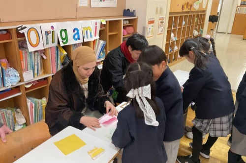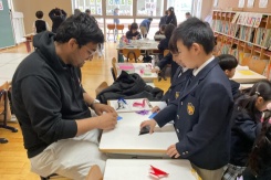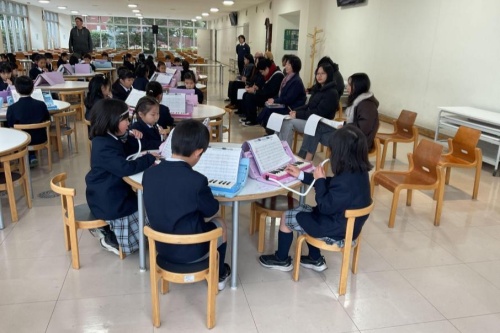 PYP Unit5「Japan culture」で学んできたことを伝えようと,1年生はICLAからのお客様への「OMOTENASHIツアー」を行いました。「日本食」「日本の遊び」「日本の芸術」の3グループにわかれて日本文化に親しんでもらえるように準備してきました。ツアーのなかで質問に答えたり,お客様の国の有名なものを聞くことができたりと,言葉の壁を越えて交流する楽しさや喜びを感じられる機会となりました。