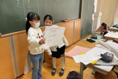 山梨県の地域を表す峡中峡北・東部富士五湖・峡南・峡東の4つのグループにわかれ,その地域の偉人や特産物,観光などについて探究活動をしています。