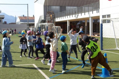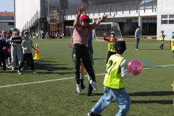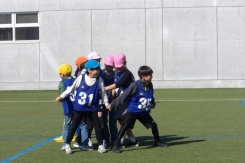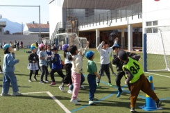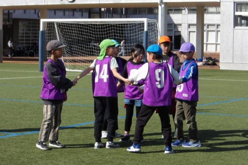 また,「役割ドッジボール」では,ボールから逃げる“プレイヤー”,ボールを投げる“アタッカー”,プレイヤーを守る“ガーディアン”の3つの役割を設定し,最後まで残ったプレイヤーの数で勝敗を決めました。ガーディアンの存在により,ボールを投げたり取ったりするのが苦手な子も安心して参加することができました。