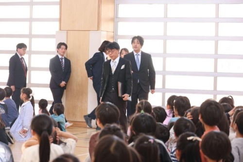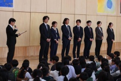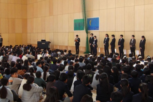 卒業した6年生も参列し,これまでお世話になった先生方に感謝の気持ちを込めてお別れをしました。