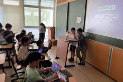 4年生に進級し,3日目です。新しいクラスメートや先生にも少しずつ慣れてきました。「お互いのことをもっと知ろう」ということで,自己紹介をしたり,自分に関するクイズを出題したりしました。新しい発見があったときには笑い声があがり,和やかな雰囲気の中で交流することができました。同時に,1年生をむかえる会の準備も進めています。これまでの経験を生かして,短い時間で小道具を作成することができました。明日の本番が楽しみです。