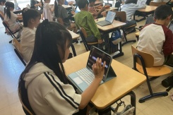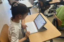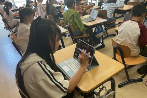 4年生のプロジェクトタイムでは,テーマやチーム名のイメージを膨らませるために事前学習を行いました。iPadを使い,チーム名の元となっている「地」「水」「火」「風」の意味を調べました。