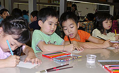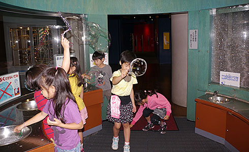 6月18日(水)のDSタイムに、山梨県立科学館に行ってきました。 はじめに展示室で装置や映像などにふれて科学を楽しみました。 つぎに、「紫外線に反応するインクを用いて絵を描く実験」をしました。 描いた絵が野外で変色することをみて、「紫外線で変色する絵」を楽しんで描いていました。