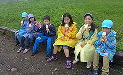 2日目は、みんなの大好きな妖怪体操で朝が始まりました。食事をし、清掃を済ませた後、絵図ハイクに出発しました。絵図ハイクでは霧がかかる森の中を、絵図を見てチームで協力して歩きました。無事に到着した後に食べた、清泉寮のアイスクリームの味は格別だったようです。午後はゆったりと焼き杉キーホルダーを作り、思い出の記念品としました。 どの子どもたちも、たくさんの活動を自分の役割以上に頑張って過ごしていたように感じます。たくさんの自然の中で感じたさまざまな思いを胸に、また一歩成長できたのではないかと感じています。