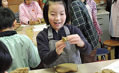 先週は最先端の科学技術を結集したリニア見学センター、今週は打って変わって300年以上の伝統ある技術を今に伝える若草瓦会館に行ってきました。 鬼瓦が伝統工芸品であることや、鬼瓦に込められた先人の想いや願いなどの話を聞いた後、事前に描いたデザイン画をもとにオリジナルの鬼面瓦をつくりました。 施設の方にコツを教えていただきながら、鼻や眉毛、目、口などのパーツを組み立てていきました。 強そうな表情、ユニークな表情、笑った表情、困った顔というように、一人ひとりが違った、オリジナリティあふれる作品ができました。 作り終えた子どもたちからは、「楽しかった」「想像以上につくるのが難しかった。」「デザインと変えたところもあるけれど、うまくできてよかった。」 という声が聞こえてきました。山梨の伝統に触れることができ、子どもたちにとって大変貴重な体験になりました。 瓦会館の3人の指導員の方たちからは、「大変落ち着いた態度に驚きました。」 「3・4年生が作りに来ることが多くて2年生はあまりありませんが、出来栄えはたいへん見事です。」 「立派な作品に焼き上げます。コンクールに入賞できるといいですね。」と、それぞれ話してくださいました。
