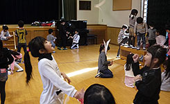 1月21日に山梨学院幼稚園を訪問して、青組のみなさんと一緒に遊びました。 2年生は科学の時間に、風に乗せて遠くまで種を運ぶことができる4種類の種の模型を作りました。 飛ばしてみるとクルクル回ったり、ふわりと風に乗ったりしてとてもおもしろかったので、 幼稚園生にもプレゼントして、それらを使って遊びました。遊ぶ前には、種の運ばれ方についての説明も簡単にしました。 それから、実際に飛ばして遊んでみると、青組さんは大変驚いたり、喜んだりしてくれました。 終わりの会では、幼稚園と小学校、それぞれの感想発表のあとに、小学校への質問を受けました。 2年生は、青組のみなさんに喜んでもらえたことが嬉しかったようです。彼らが入学してきたときは、 1年生になったみんなともっと仲良しになって、たくさんのことを教えてあげたいと話していました。