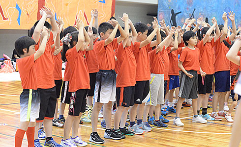競技の中盤には、各チームの勢いをさらにつけるための応援合戦がありました。各チームで個性的な動きや掛け声を考えました。競技では、山梨学院のスポーツの代名詞でもある駅伝があり、1年生から6年生までの代表の子どもたちが襷をつなぐたびに、大きな声援が沸き起こり、会場が一体となって応援しました。未就学児童のための競技には、山梨学院のマスコット、アルティー君とベッキーちゃんが登場し、フェスティバルに花を添えてくれました。